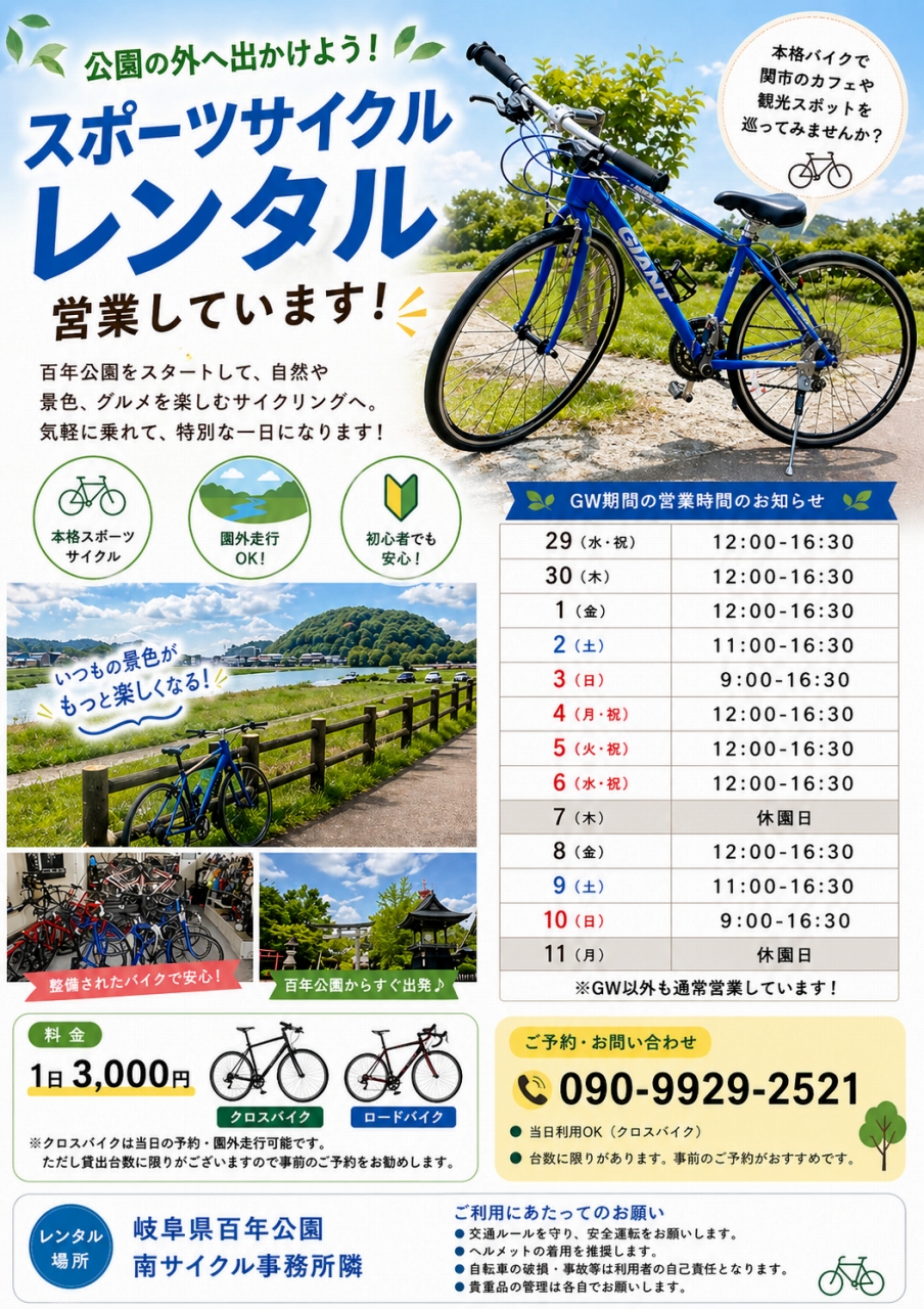 スポーツサイクルレンタル営業中!(GW)